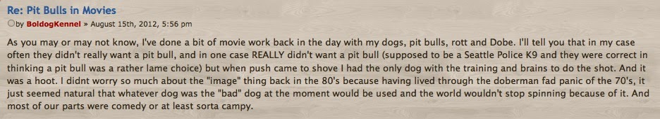 BORCHELT provided the above "expert" opinion about the safety of pit bulls AFTER he was sued for a million dollars for providing his "expert" opinion to a retired fire fighter about the safety of a pit bull that he was in possession of. The pit bull attacked the retired fire fighter. Despite the fact that the pit bull had a known documented history of previous aggression, BORCHELT assured the retired fire fighter the pit bull was safe. During the civil trial, BORCHELT testified under oath that the pit bull was not vicious. Yeah. Just in case you missed the colored text above indicating an external link, click here.
